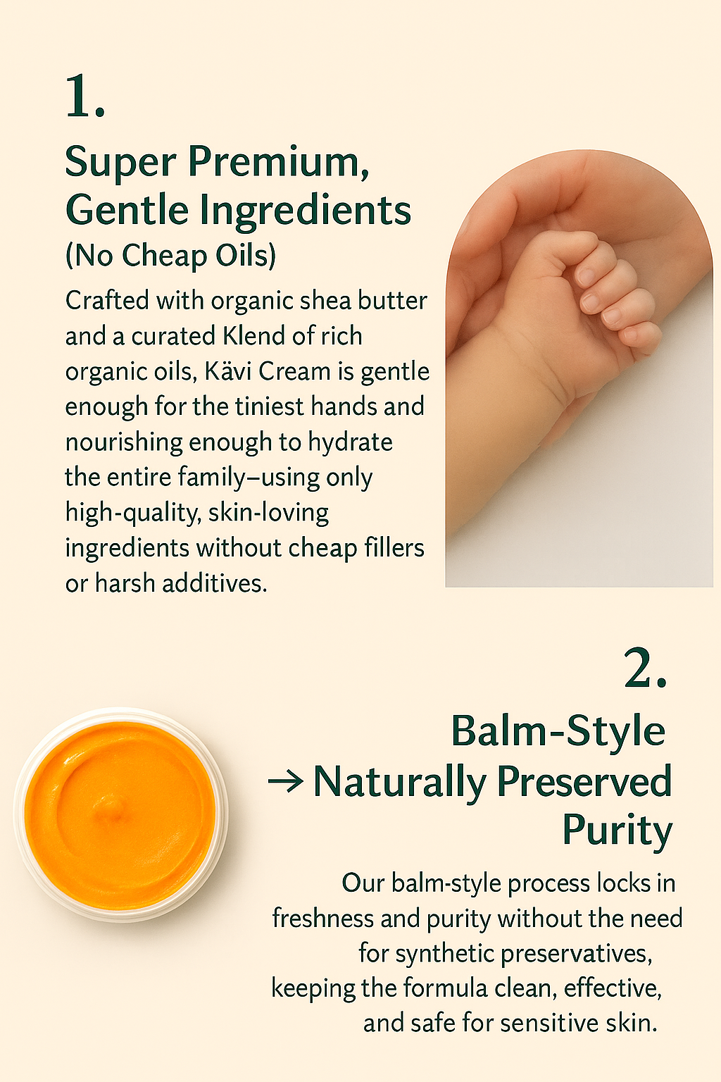 Crafted with organic Shea butter and a curated blend of organic oils, this luxurious formula is gentle enough for the tiniest hands and rich enough to hydrate the whole family. Its vibrant orange hue and velvety, silky texture are naturally derived from our unique, non-greasy formulation—our little secret to radiant, healthy skin.